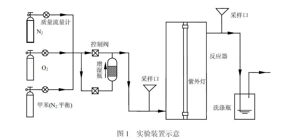 甲苯是一種導致大氣光化學污染以及對人體健康造成毒害作用的典型揮發性有機物,城市大氣環境中甲苯濃度約為幾到幾十個μg/m3.機動車排放、工業過程、建筑涂裝、餐飲油煙等均是大氣中甲苯的來源.此外,甲苯作為室內污染物之一,長期暴露容易引發頭痛、神經衰弱等疾病.近年來,利用紫外光氧化和紫外光催化氧化去除毒性氣態VOCs 成為研究熱點.紫外光和臭氧協同作用即UV/O3 體系能有效地去除氣態揮發性有機物,但需要外加的O3來源補充體系中不能自主產生臭氧.紫外光和催化劑的協同作用能夠有效地去除VOCs,但降解過程中產生的中間產物容易導致催化劑活性降低.國內采用紫外光氧化及紫外光光催化降解氣態甲苯的研究中,使用的紫外光波長也均是254nm 或者365nm.使用低于254nm 的紫外光氧化氣態苯系物的研究相對較少.相對于254nm 紫外光,185nm 紫外光具有更高的能量,水和氧氣分子在短波長紫外光輻射下,可產生⋅OH 和臭氧.