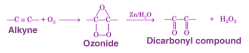 炔與臭氧發(fā)生反應,導致炔斷裂。 這產(chǎn)生了臭氧化物中間體。 在鋅金屬的幫助下進行簡單的含水后處理,很終產(chǎn)生二羰基化合物。 反應可以寫成: