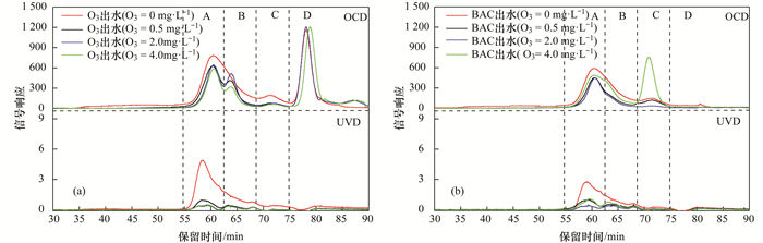 圖3不同O3濃度條件下O3和BAC出水LC-OCD分析